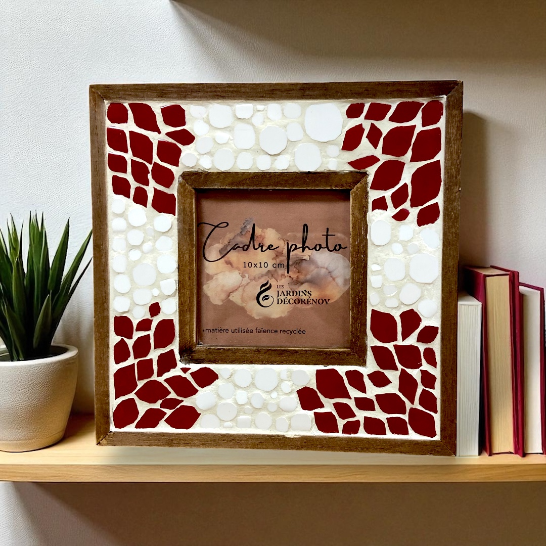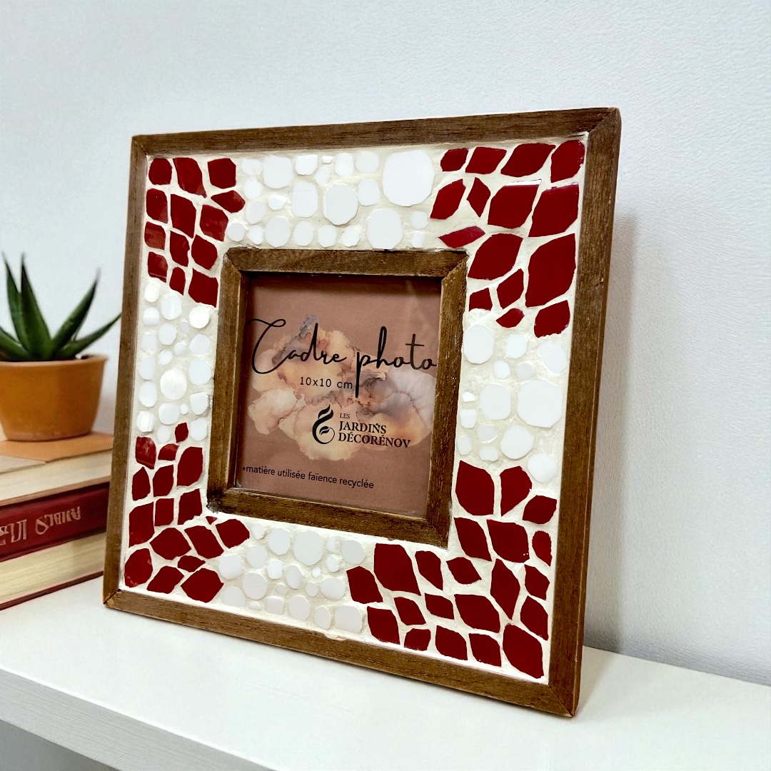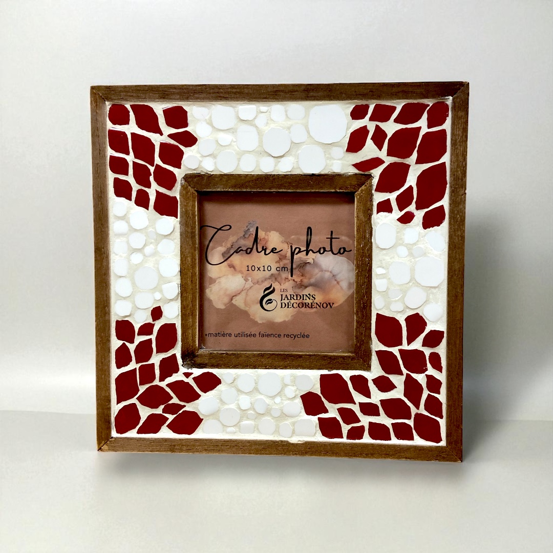Avec son format idéal, il mettra parfaitement votre photo (10 cm X 10 cm). Ce cadre unique allie l’authenticité du bois à la brillance de la faïence, créant un jeu de lumière captivant qui attire le regard.